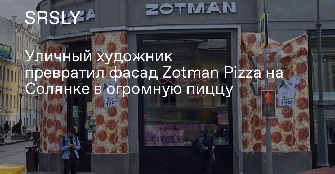 Уличный художник превратил фасад Zotman Pizza на Солянке в огромную пиццу